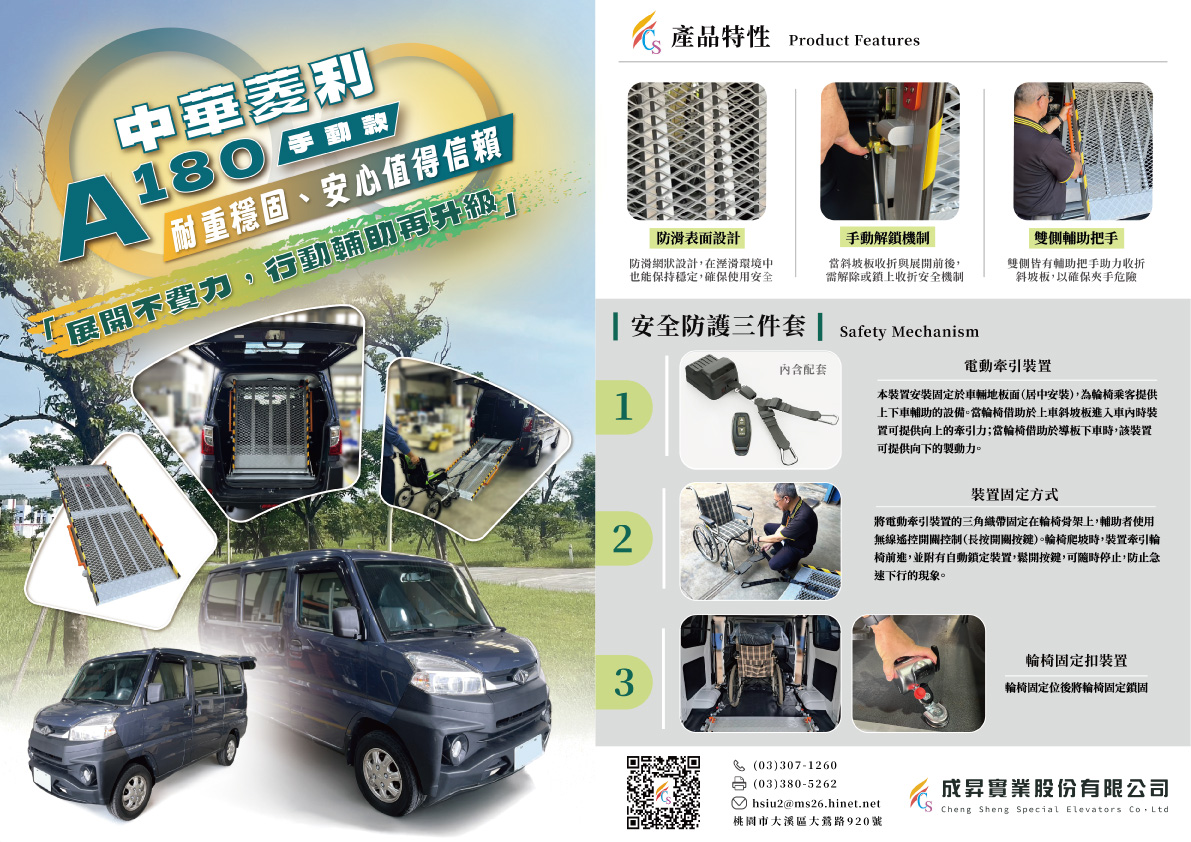 斜坡板系列推薦,提供汽車斜坡板、輪椅斜坡板等電動/手動斜坡板,改善台階與門檻高低落差。斜坡板具防滑紋路,有效防止輪椅滑落。成昇斜坡板輕巧耐用,操作簡便,適合家庭、計程車及照護中心等多種環境。成昇能根據您的需求與環境提供客製化服務,享有現場免費評估、到府安裝,長期售後保養及後勤維修等完善售後服務。輔助輪椅上下車及樓梯,輕鬆搭建臨時無障礙坡道。
